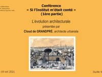 - L’évolution architecturale de l’Institut, présentée par Cloud de Grandpré, architecte-urbaniste.